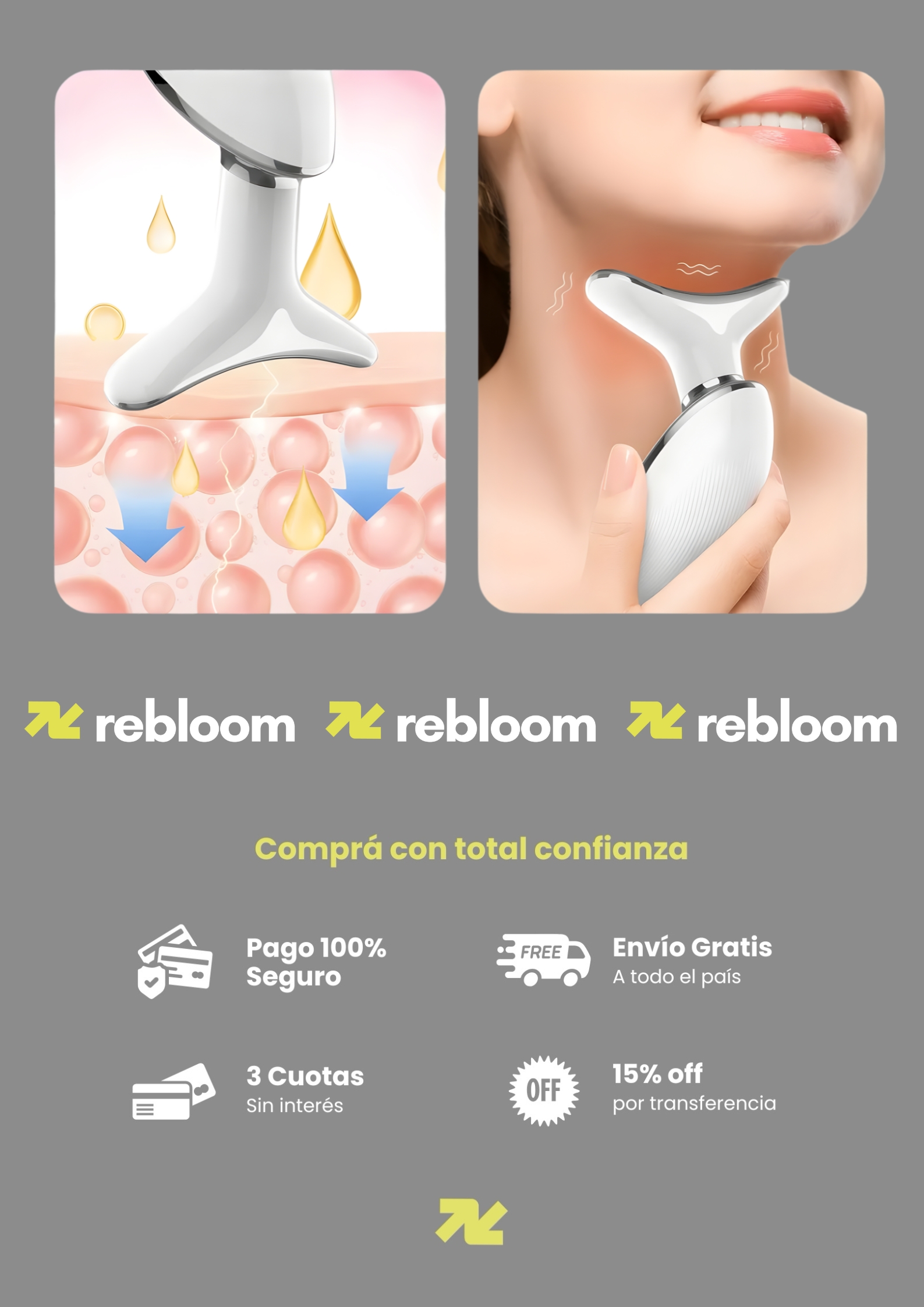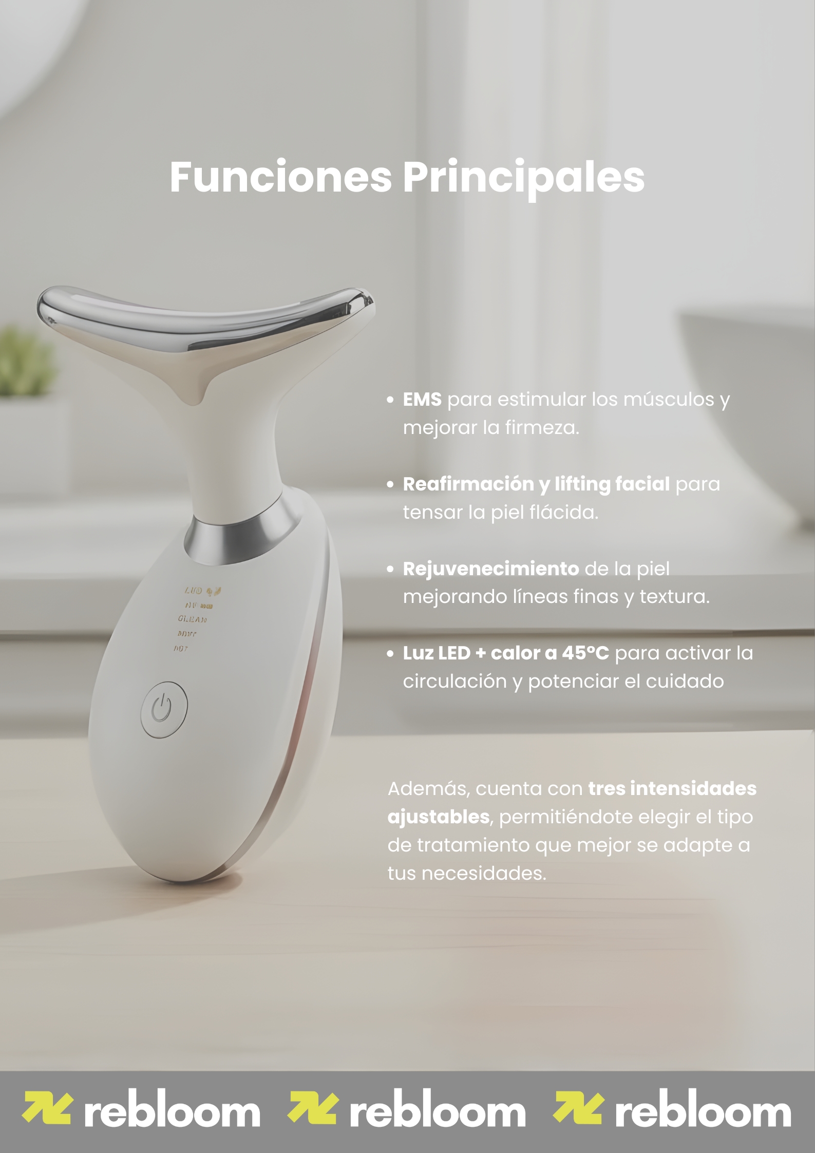 El Masajeador Facial y Cervical Rejuvenecedor 45°C con Luz LED + EMS es la herramienta ideal para mejorar la apariencia de tu piel de manera rápida, segura y desde la comodidad de tu casa. Su combinación de luz LED avanzada, calentamiento inteligente a 45°C y vibración de alta frecuencia trabaja directamente sobre las capas profundas de la piel, ayudando a rejuvenecer, tensar y embellecer tanto el rostro como el cuello.