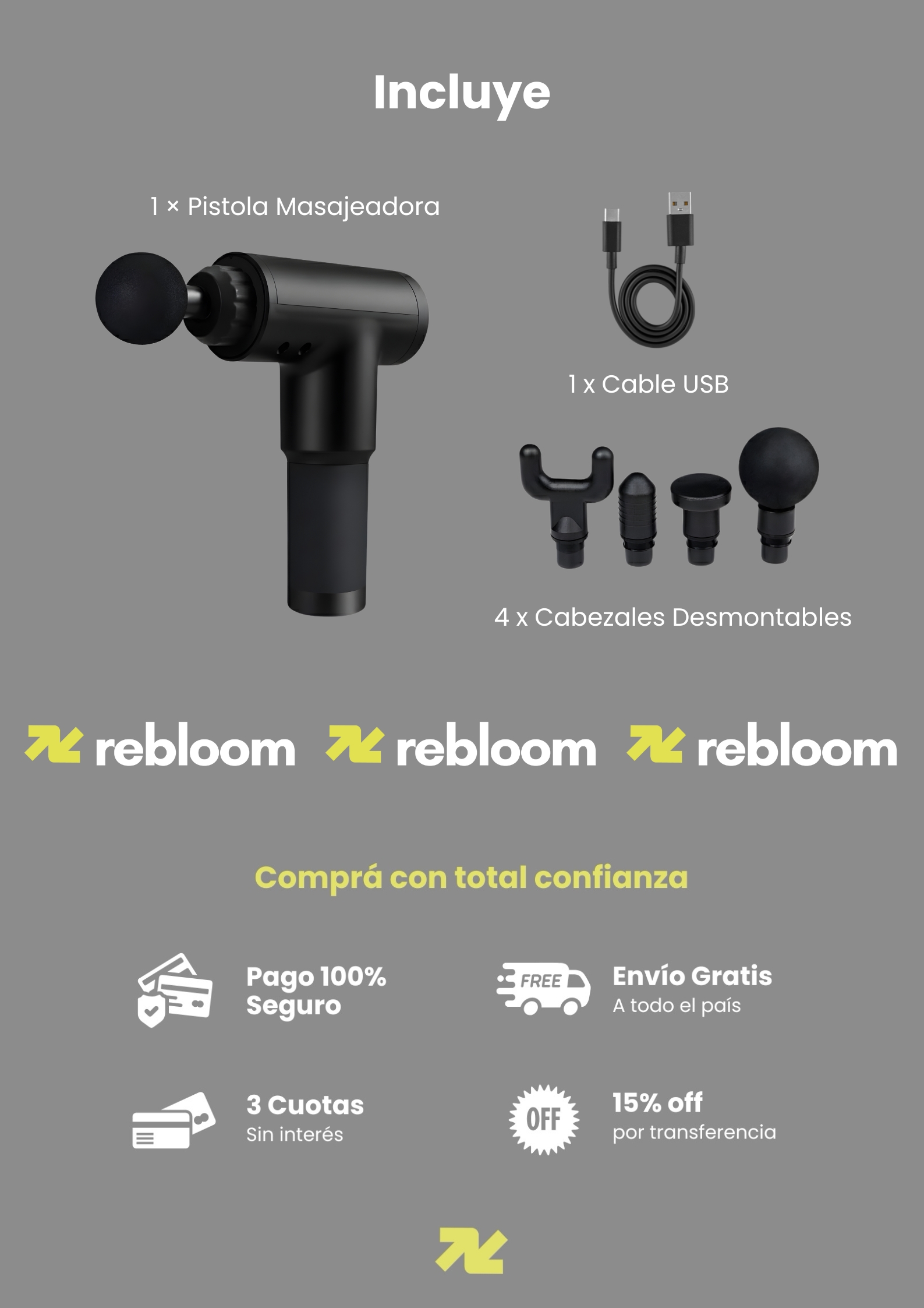 Sumá a tu rutina de bienestar una pistola masajeadora de fisioterapia de alta intensidad, ideal para aliviar tensiones, relajar músculos y acelerar la recuperación después del ejercicio. Incluye 4 cabezales y 6 niveles de velocidad, para que puedas ajustar la potencia y el tipo de masaje según cada zona del cuerpo. Es liviana, cómoda de usar y su batería de larga duración te permite llevarla a donde quieras.